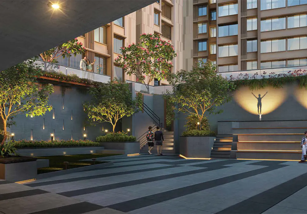 Arkade Mulund West Property Features Amenities like Main Pool, Kids Pool, Gazebos, Pool Deck, Walking Track, Lawn, Tree Court, Courtyard, Artificial Lawn, Flag Pole, Senior Citizen Area, Skating Rink, Kids Play Area, Zen Garden, Bird-Watching Platform, Amphitheatre, Adventure Zone, Turf Court, Miyawaki Forest, Shallow Pool with Loungers.